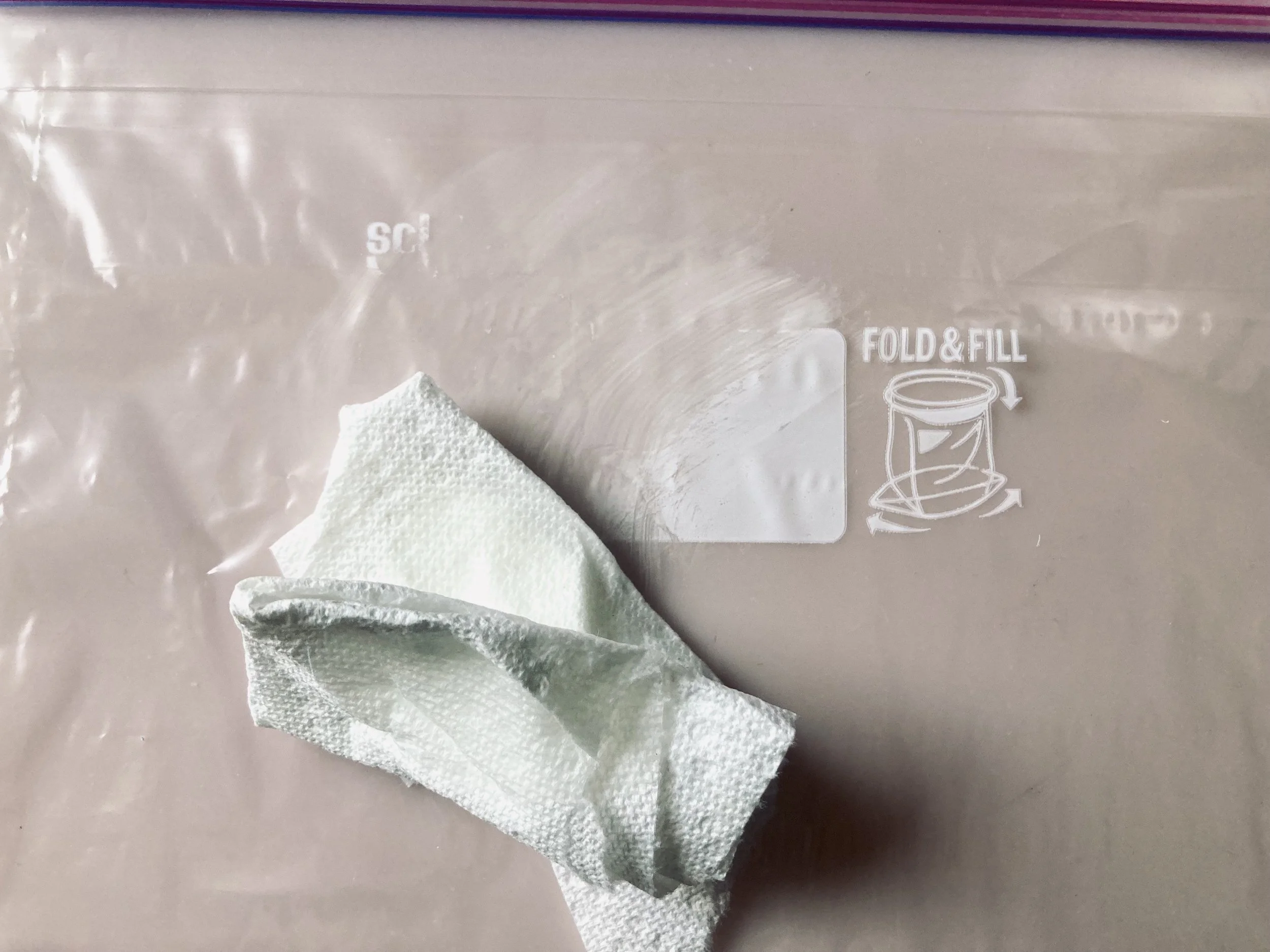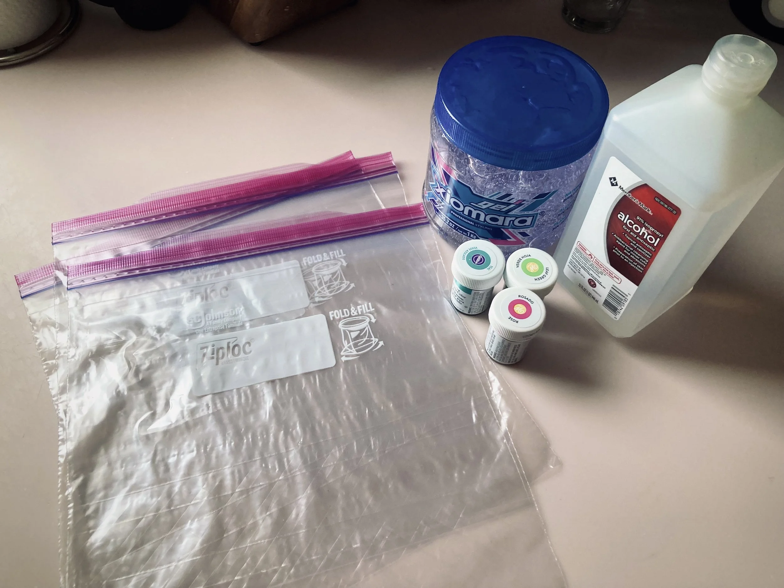 Use the alcohol to remove the labels on the ziplock bags. This was surprisingly effortless and very satisfying. Ha!