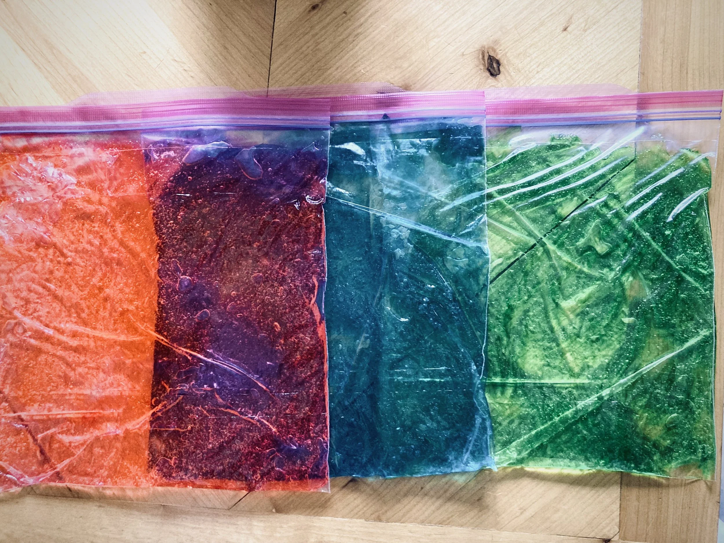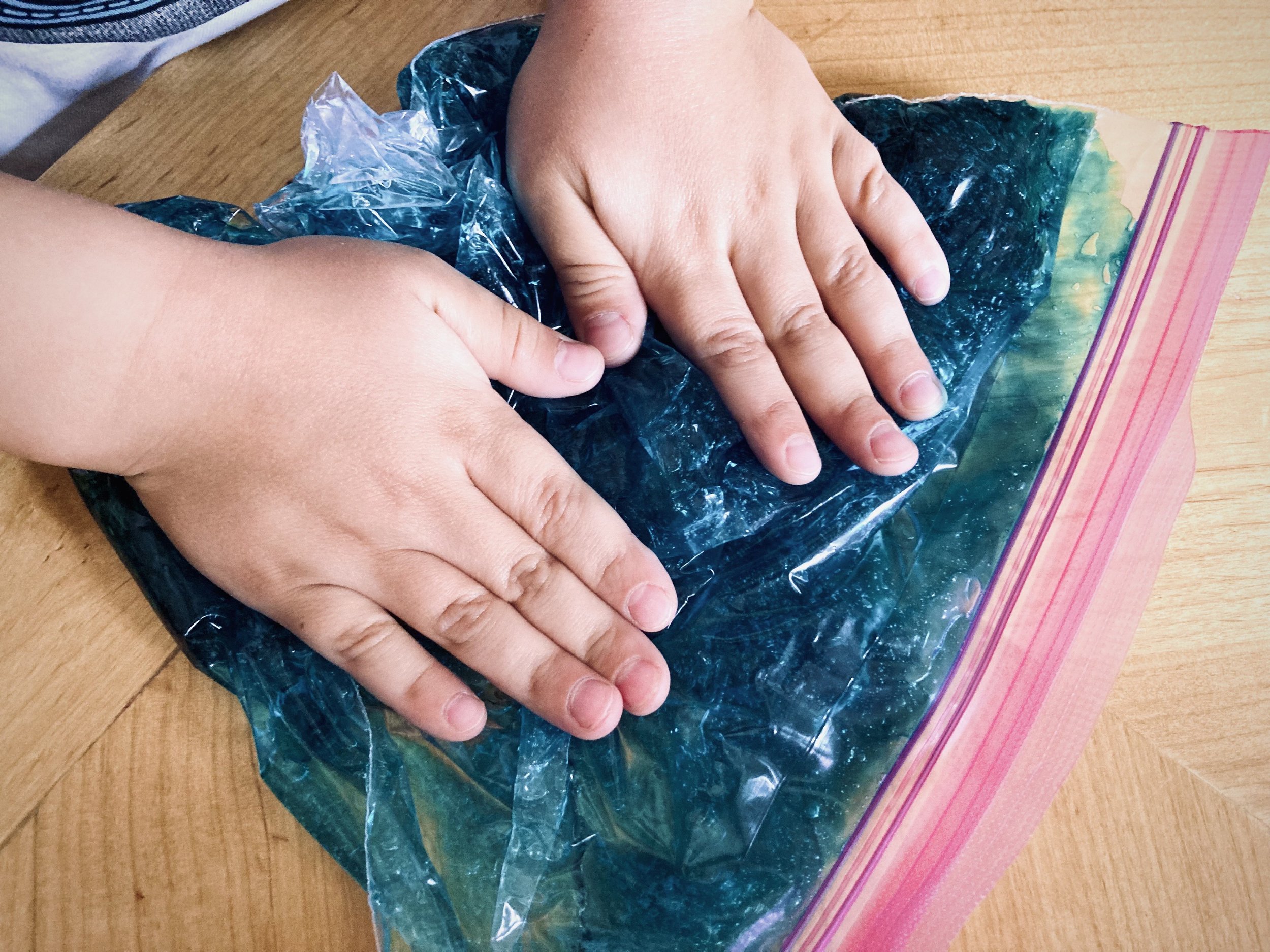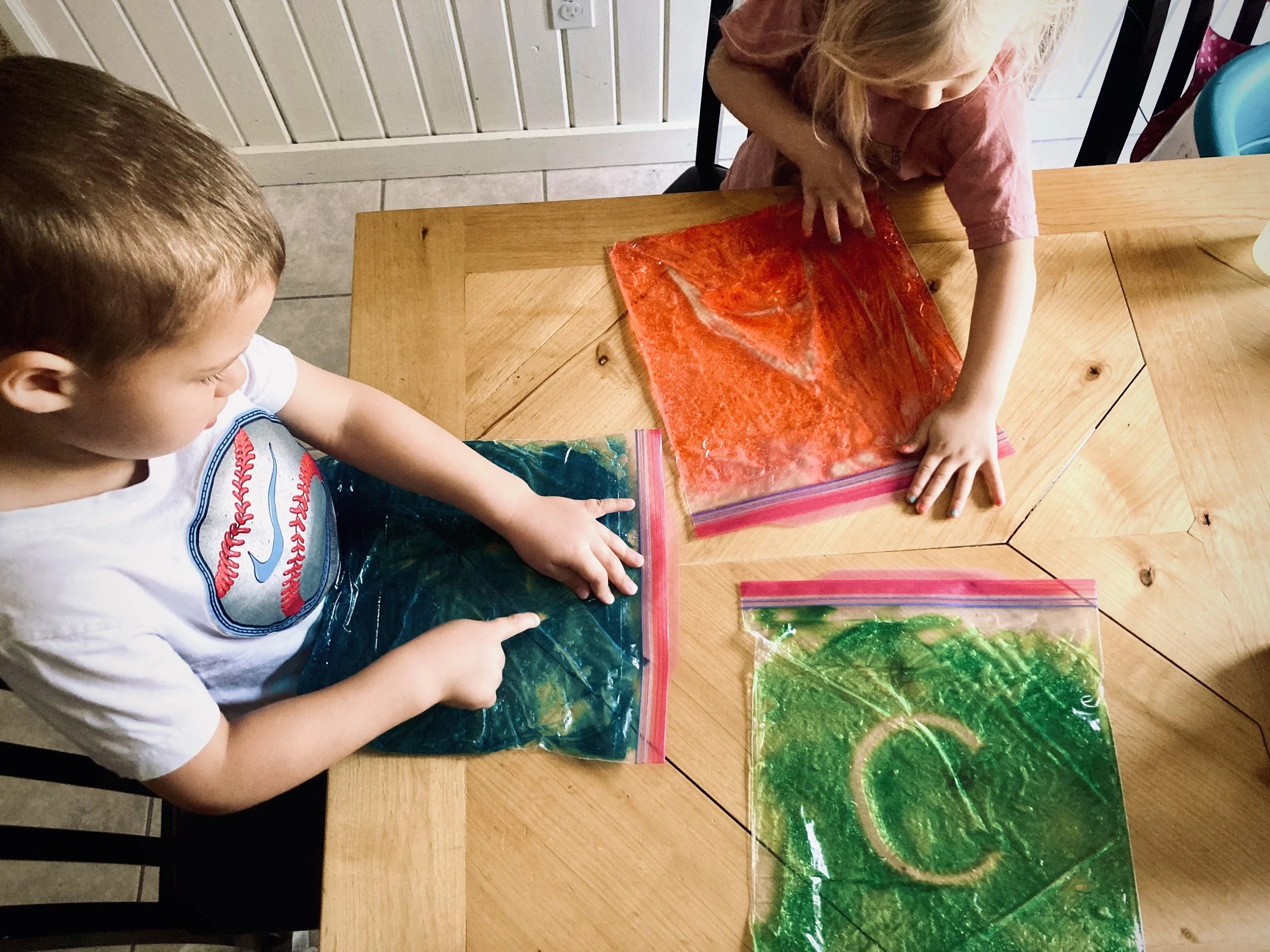 My kids love just about anything that is squishy. Texture is a big deal for kids, and they love exploring new textures. Touch and texture help develop motor skills. Having children trace or write shapes, numbers, or letters in or on something with texture, such as sand, helps build connections for them through multisensory practice, when we are engaging at least three of the senses at the same time. Using these Gel Sensory Bags for skills in letter or number formation can also build on thinking and creativity skills, as well as sensory awareness.