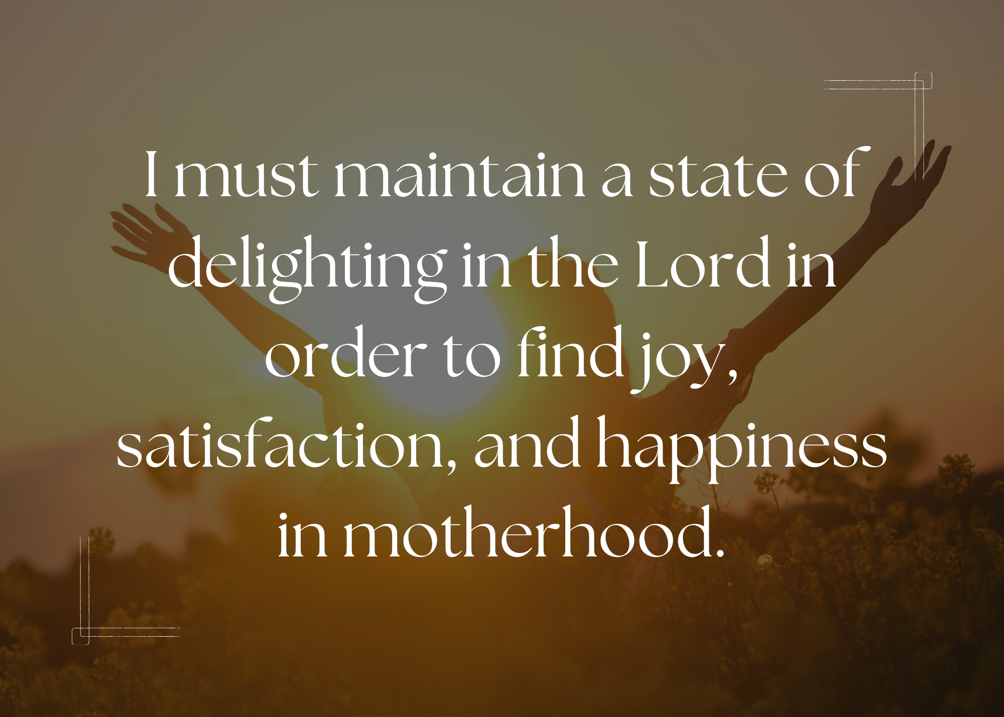 Delighting in the Lord and His Word gives you an eternal perspective. All the sudden the dreams you found so hard to give up mean nothing to you and the only dream you care about is the one the Lord has called you to. I must maintain a state of delighting in the Lord in order to find joy, satisfaction, and happiness in motherhood.