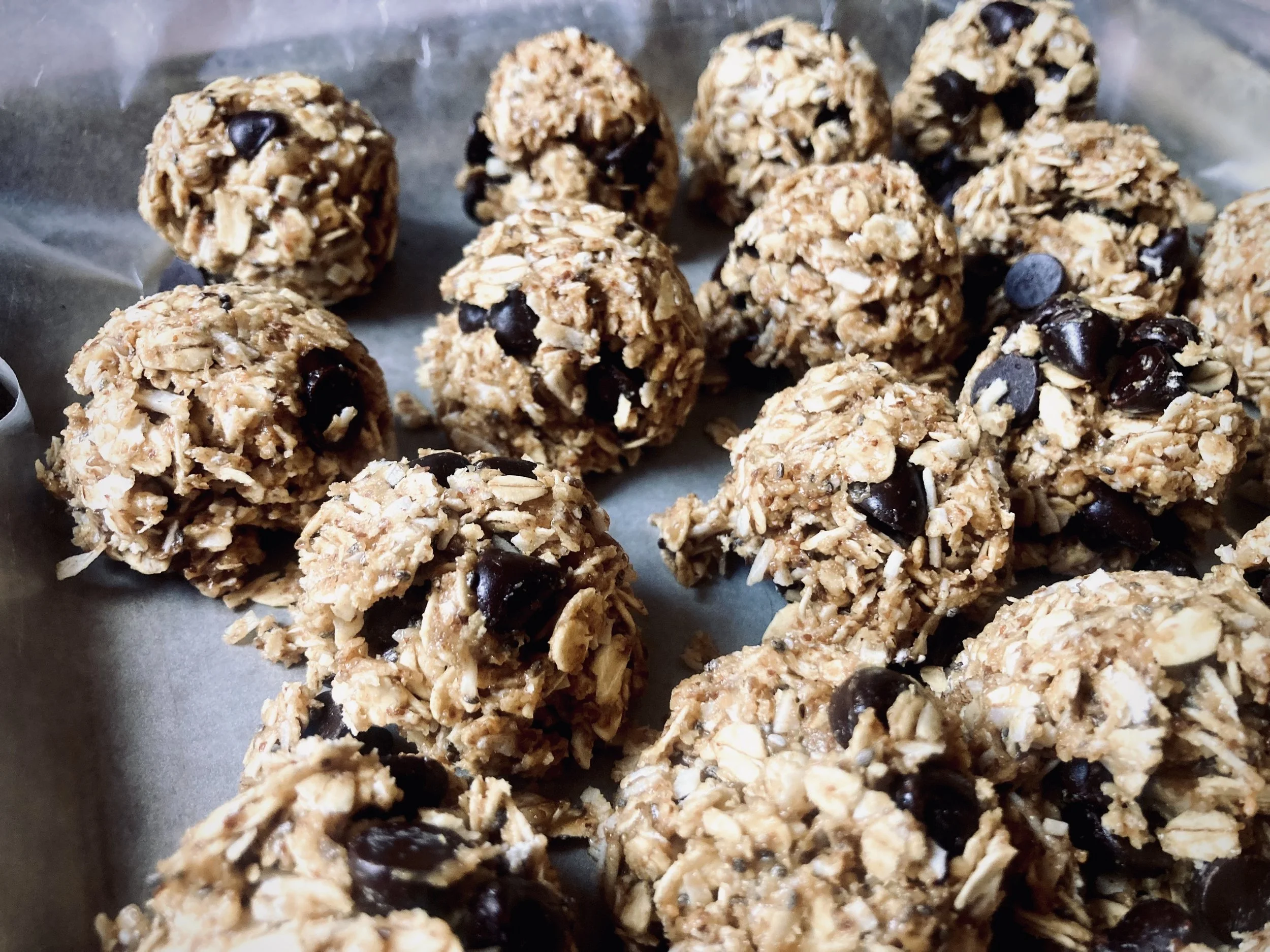 Mix all ingredients together in a bowl until fully combined. Using a medium size cookie scoop, or your hands, to make balls and place them on a cookie sheet covered with wax paper. Place in the freezer for 15 minutes, or in the fridge for longer, until the balls are firm. Transfer to an airtight container and store in the fridge.